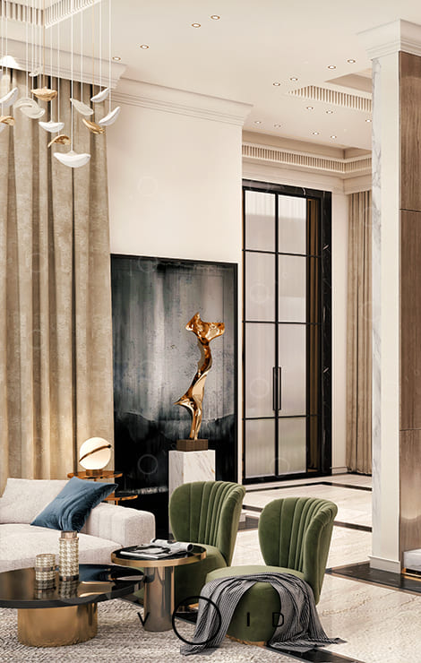 In residential design, we plan and design spaces within a client's residential apartment from single-family models to huge-family houses with fine touches. It starts with a conversation and a vision that ends with technical drawings and design shots, giving the client a close realistic idea of their new home.